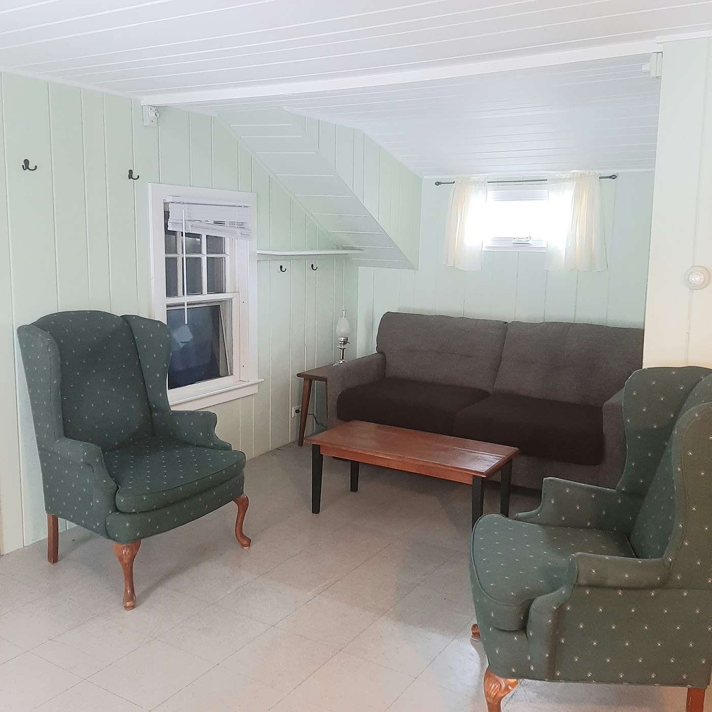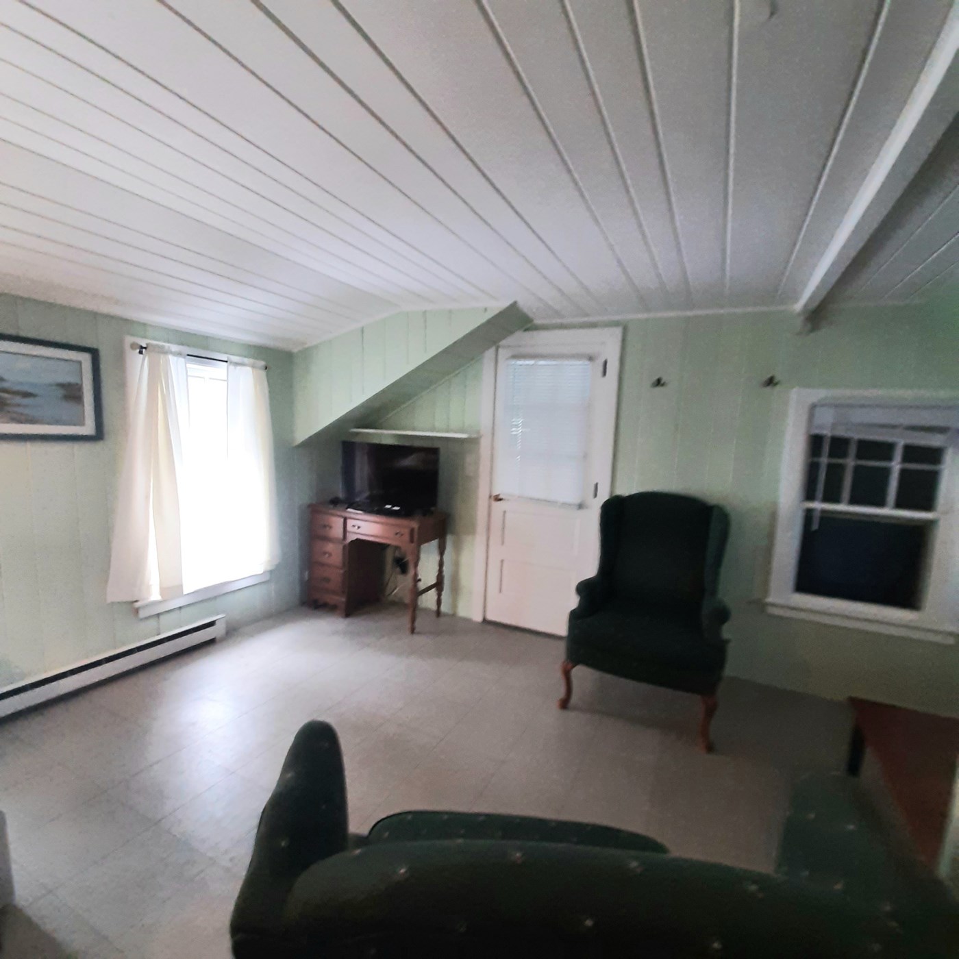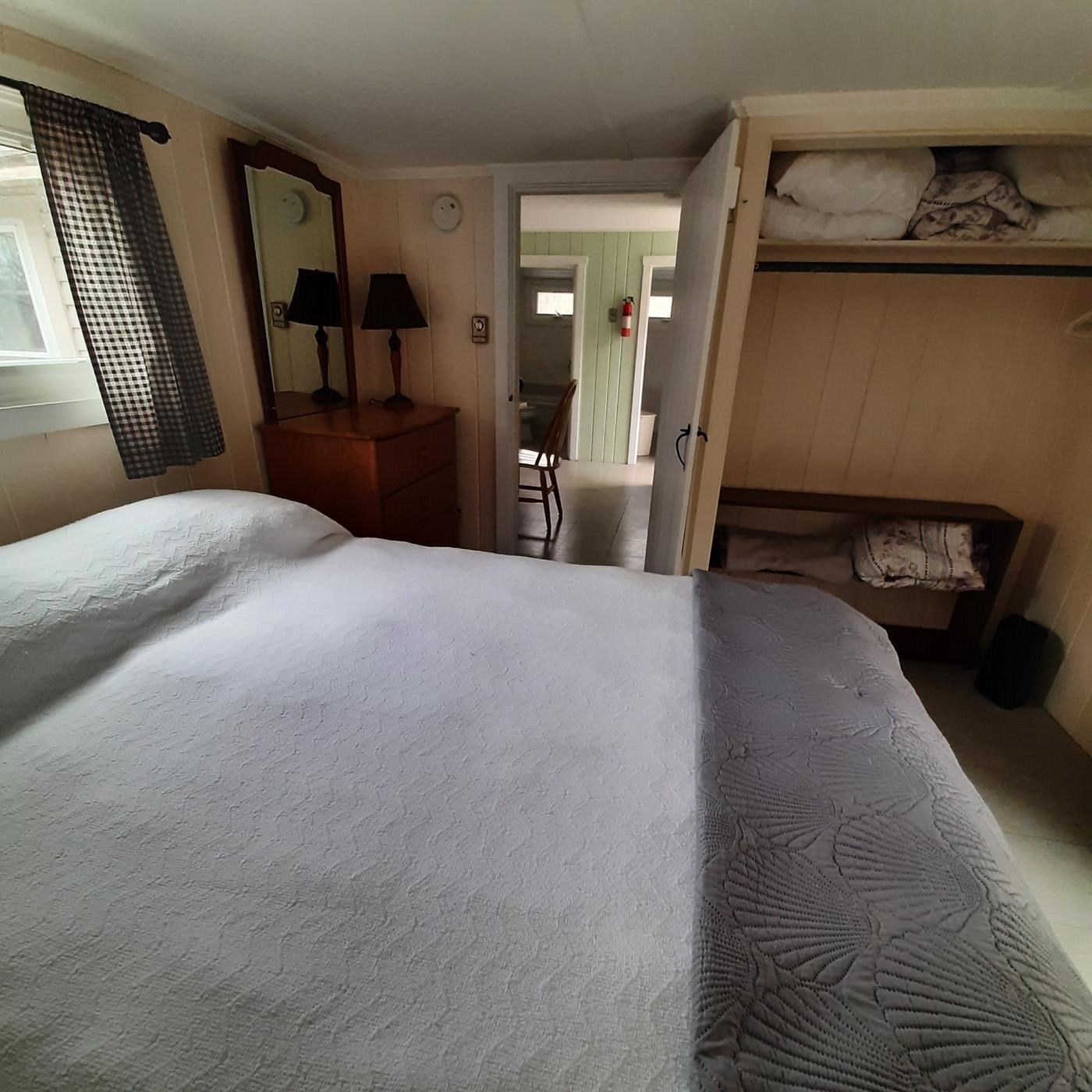 Charming cottage nestled in the woods set off the road with private yard. Living area is on the second floor and washer/dryer and storage on the first floor. Quiet, overlooking open field with wildlife. Master bedroom has queen size bed. 2 full size futons in living room and enclosed porch for added sleeping space.Distance to beach: 2/10 of a mile. 5 minute walk to Mayo beach, harbor, main street, shops/grocery store, restaurants, skateboard park, playground. Kitchen has everything you need. You feel like your in a tree house. Full bath with tub and shower, outside shower also available. Large deck with table, chairs/umbrella and gas grill. Pets considered. Off street parking. Parking for 2 cars. Cable/internet/Laundry facilities, Non Smoking. Blankets and pillows will be provided. Tenants to supply bed linens and towels.