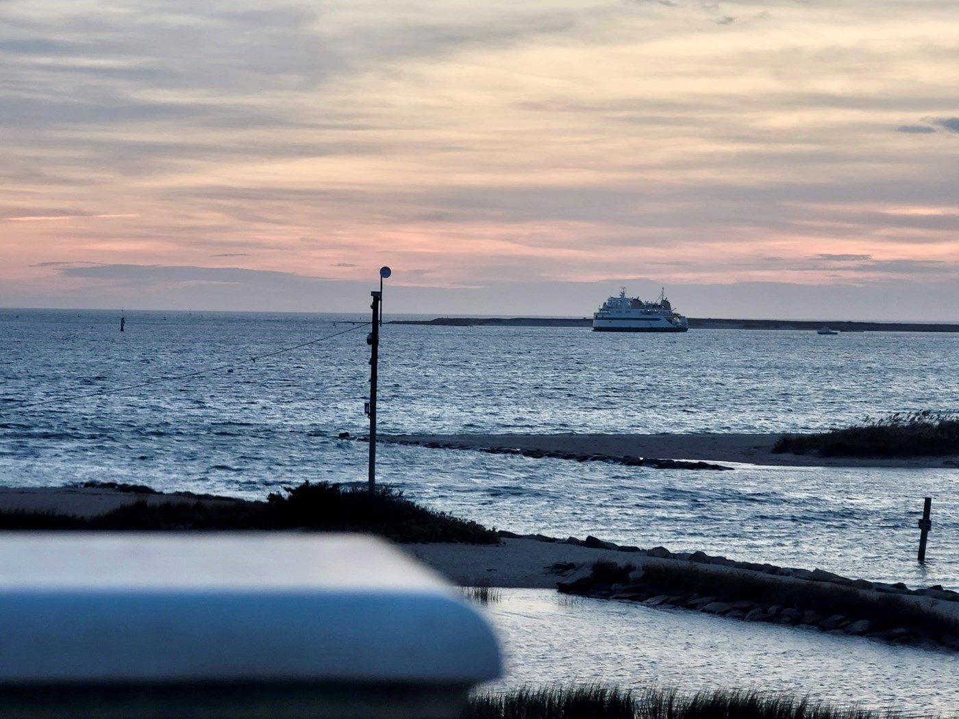 Watch Nantucket and Vineyard ferries while relaxing on balcony.