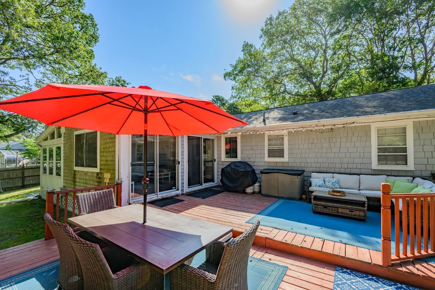 You'll have the summer of your dreams in this welcoming Yarmouth home, designed to leave you feeling relaxed and refreshed. Perfect for families, it offers the ideal mix of comfort, convenience, and classic Cape Cod charm.<br>Step inside to a spacious living room with plenty of comfortable seating for everyone to gather. Just beyond, a sunny four-season room with a game table and extra seating sets the stage for board games, puzzles, or simply enjoying your morning coffee. The recently renovated kitchen provides everything you need to prepare meals with ease, whether it's a quick breakfast before the beach or a full family dinner.<br>Slide open the glass doors to discover your private backyard retreat. Lounge on the outdoor sectional, enjoy summer breezes on the patio, or relax beneath the brand-new pergola out front. In the evenings, gather around the fire pit, fire up the propane grill for a cookout, or rinse off the day's adventures in the outdoor shower.<br>For fun and entertainment, the home features a professional-grade adjustable basketball stand and hoop built into the driveway, with a basketball available for guests to use. You'll also enjoy music throughout your stay with new Sonos radio speakers installed on the front deck under the pergola and on the back deck. Just log into WiFi and play directly from your phone and enjoy. <br>At day's end, three comfortable bedrooms welcome you for a restful night's sleep. With central A/C, two full bathrooms, a washer/dryer, and thoughtful extras like WiFi, a smart TV, board games, bikes, and even a ping pong table, this home has everything you need for a carefree Cape getaway.<br>Bathroom 1: Walk-In Shower- Main level<br>Bedroom 1: Queen Bed - Main level<br>Bathroom 2: Full with Tub/Shower Combo<br>Bedroom 2: Queen Bed- Main level<br>Bedroom 3: 2 Twin Beds- Main level<br>Beyond the property, you're just 1.8 miles from Seagull Beach and less than a mile from the Cape Cod Inflatable Water Park, giving you endless ways to fill your days with fun, sun, and unforgettable memories.<br>Book your stay today and discover the perfect blend of comfort, charm, and Cape Cod adventure where every detail is designed to leave you relaxed, refreshed, and already dreaming of your next visit!<br>*Please note that for added peace of mind, the property is equipped with two exterior security cameras: one floodlight camera at the front of the house and another on the right side. These are outdoor-only and do not record any interior spaces.<br>Free Tickets and Complimentary Activities! Create unforgettable memories and experience Cape Cod like a local! Enjoy $750 worth of daily exclusive free tickets to exciting local attractions through our partnership with Xplorie. Your amenities include activities such as Island Cruises, Whale Watch, Bike Rentals and admission to Whydah Pirate Museum. When you're not soaking up the sun on the beach, enjoy daily rounds of golf at Cranberry Valley or Chequessett Golf Courses and mini-golf for family fun.<br>With all NEVR properties, we think of the little things to make your vacation special. Our Guest Welcome Bag, compliments of the homeowner, contains starter quantities of kitchen and bathroom essentials, with a few locally sourced snacks as well (subject to change based marketplace availability).<br>This home has Keyless Entry for your convenience.<br>NO smoking of anything containing tobacco, any other substance, and e-cigarettes, inside or outside of the home.<br>NO PETS are allowed inside or outside the home!<br>Max parking of cars at property: 2- No parking on lawn anytime.<br>Additional Information to Assist You:<br>Simply follow our basic check-out instructions at your departure. <br>State and local taxes are charged if applicable. <br>For Reservations made over 60 days away, you will make two payments - 50% initial payment with reservation and the final balance will be auto billed to your credit card 60 days prior to arrival. We accept American Express, Mastercard and Visa for payments.<br>A confirmed reservation is non-refundable--please consider purchasing trip cancellation insurance. Ask our guest specialist for more details regarding cancel options and trip insurance. <br>Owners provide paddle boards and kayaks for guests' usage<br>***Linens - bed sheets, bath/dish/beach towels and bath mats are included with this home<br>Please ask our guest specialist for details. Our NEVR Homes come with mattress covers, pillows and a bed cover such as blanket, quilt, bedspread etc.<br>You must be 25+ years old unless accompanied by a parent or guardian to book one of our Vacation Rental Homes. An ID must be furnished upon request. <br>Area Info: *Mileage is approximate<br>Cape Cod Inflatable Park 0.7 Mile<br>Cape Tradewinds Gift Shop 1.2 Miles <br>Seagull Beach 1.8 Miles <br>Colonial Acres Beach 2.0 Miles <br>Hyannis terminals for ferries 3.6 Miles<br>Cape Cod Mall 4.5 Miles read more show less