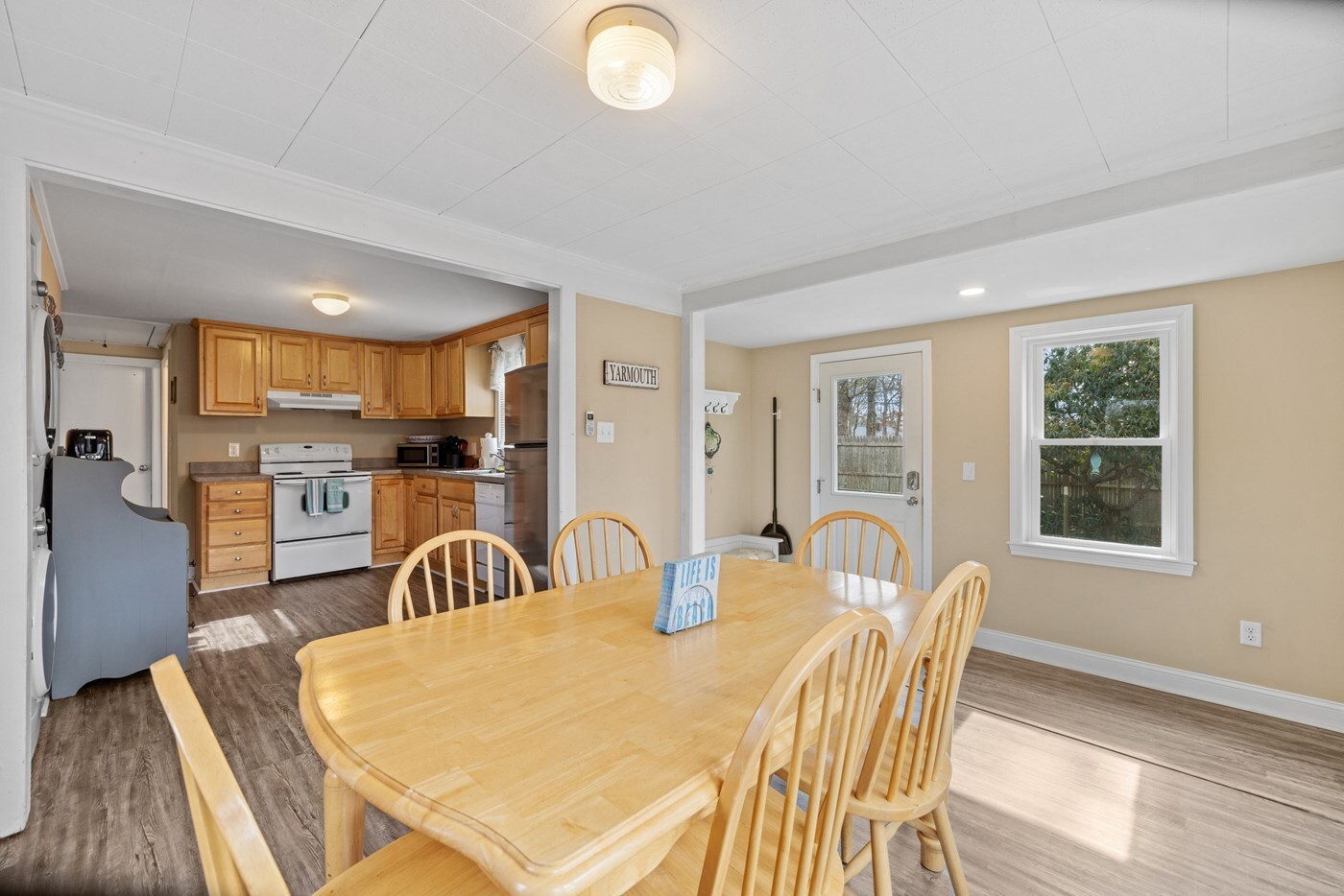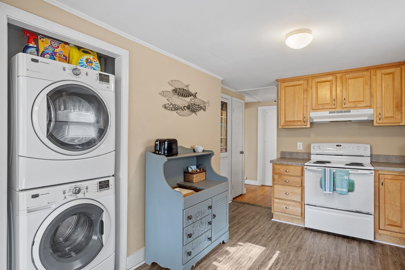 The fully equipped kitchen makes meal prep a breeze, whether you're making a hearty breakfast before heading to the beach or preparing a seafood feast. It includes a full-size refrigerator, oven, microwave, coffee maker with complimentary coffee and creamer, and a dining table with seating for six. A walk out door leads directly to the outdoor patio, where you can dine al fresco and soak in the fresh Cape air. You'll also find a full-size washer and dryer, along with an iron for added convenience during your trip.<br />