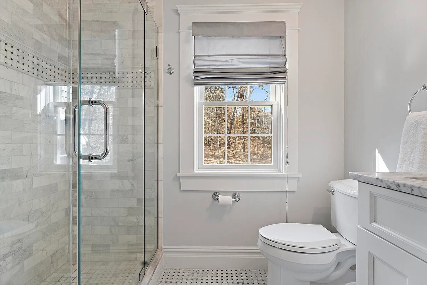 Bedroom #3 bathroom offers a walk-in shower and marble vanity