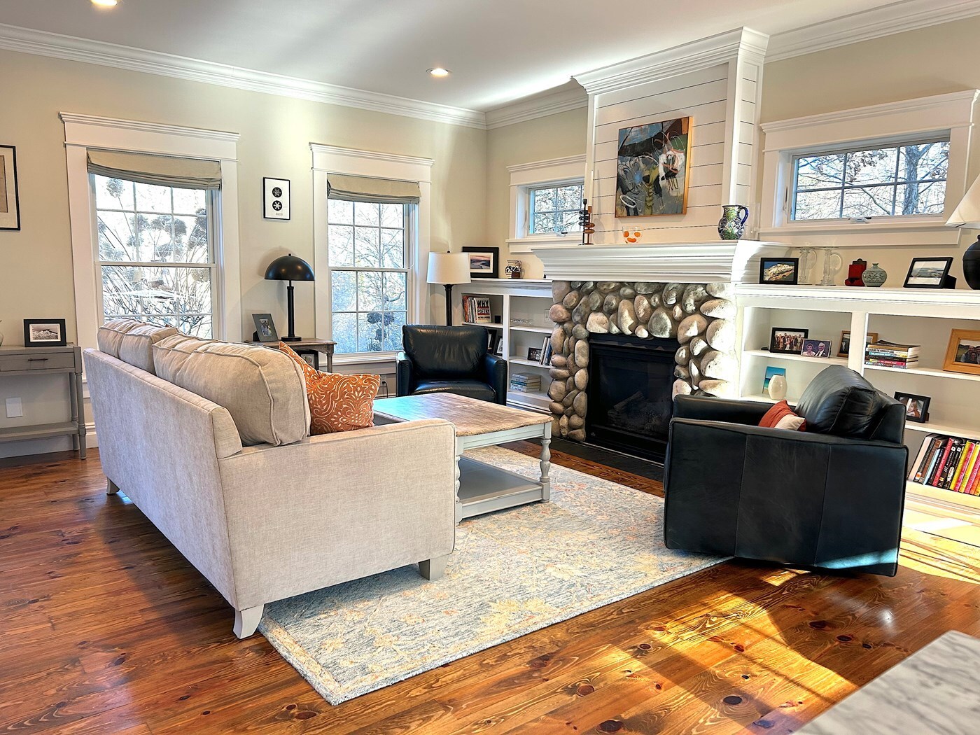 Natural light and custom built-ins elevate the living room