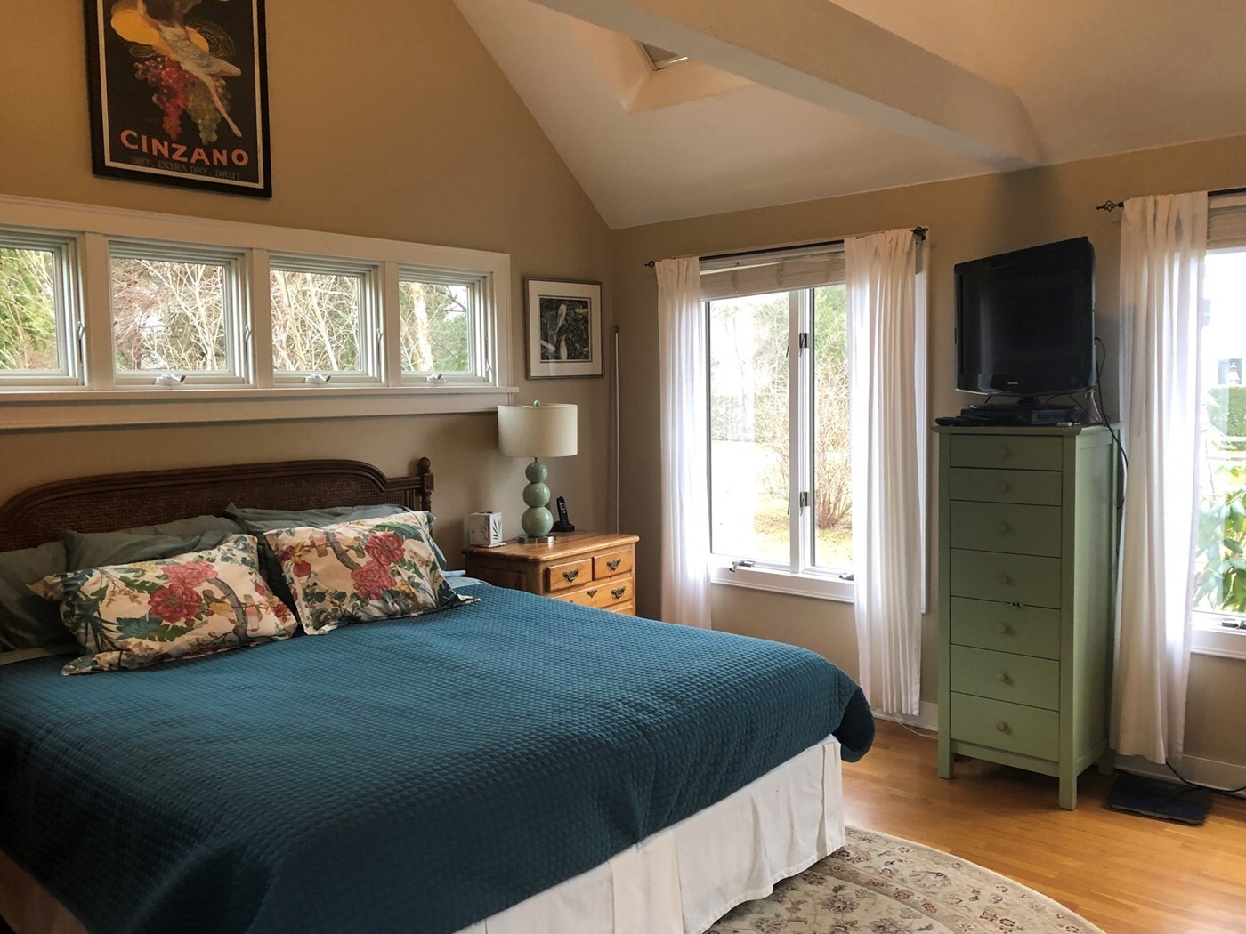 Guest Suite with gliding windows, shower bath, laundry, TV.