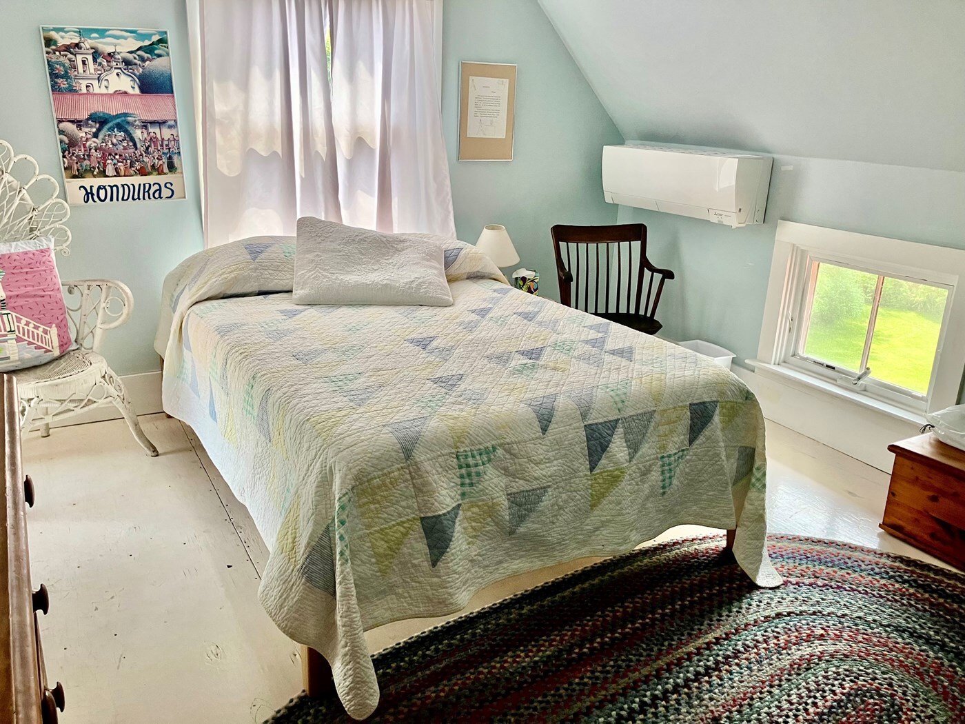 Upstairs back bedroom, with double bed and a day bed.