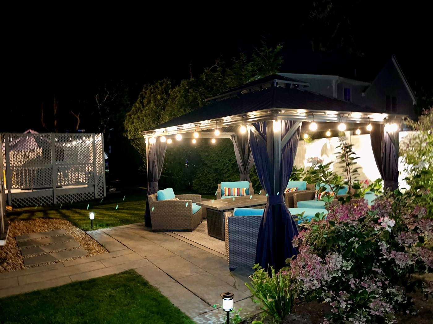 Enjoy the company of friends and family while lounging on the 16x33 back deck with built-in benches, Weber gas grill, outdoor table with additional seating, 11 foot umbrella and a privacy barrier. The deck can be accessed from the kitchen sliding door and living room, and offers nighttime lighting.
