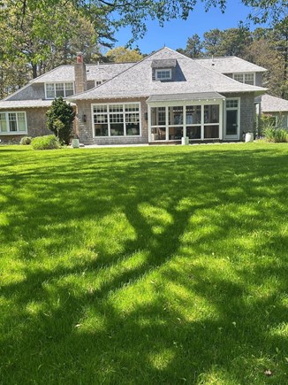 Few outdoor settings on the island can compare to the serenity and beauty offered here. The home sits just off the 7th hole of the golf course, giving guests unobstructed views of manicured fairways and playful activity throughout the day. Beyond the course lies the shimmering expanse of Sengekontacket Pond, a tidal jewel known for its peaceful waters and postcard-perfect sunsets.<br />