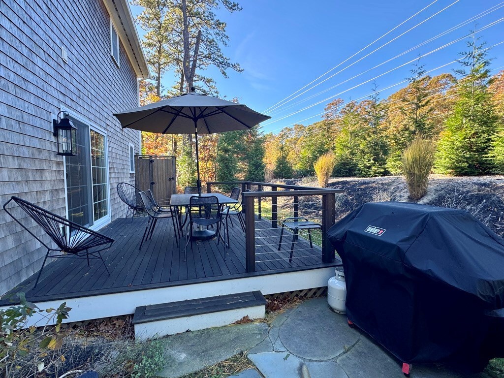 Back deck with outdoor dining, grill and enclosed outdoor shower