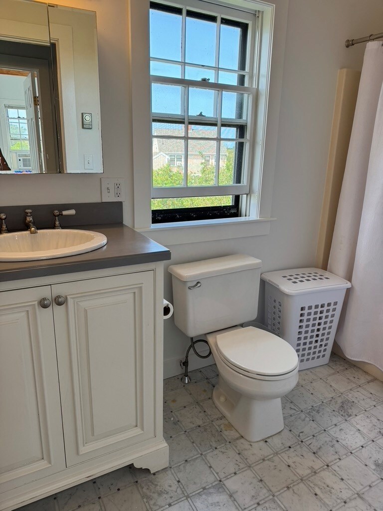 Upstairs bath with tub/shower and closet.